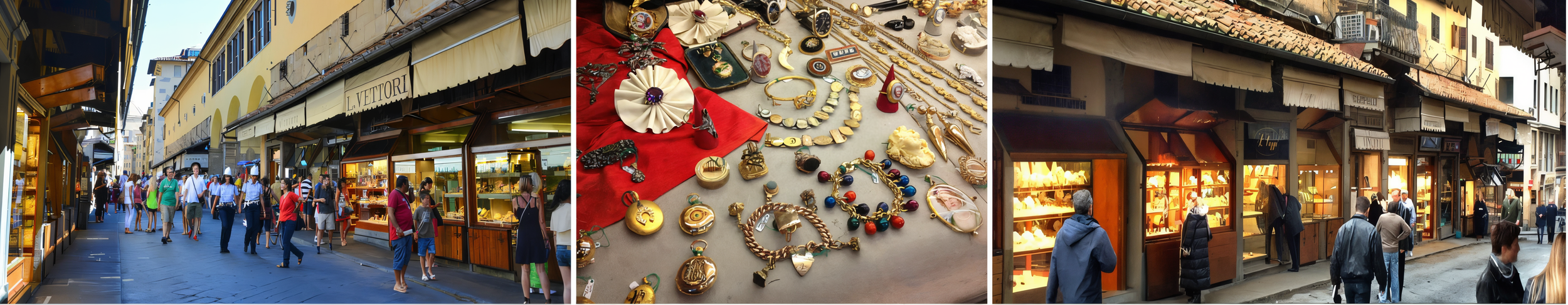 Today, these charming shops continue the goldsmithing tradition that has flourished on the Ponte Vecchio for over four centuries. Each storefront displays dazzling gold jewelry, precious stones, and exquisite silverware, creating a glittering welcome for visitors. While prices reflect the premium location, browsing these historic boutiques offers a glimpse into Florence's artisanal heritage that continues to thrive.